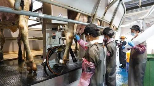 清洗、消毒做好挤奶前期工作。本报融媒体记者 邢栋 摄